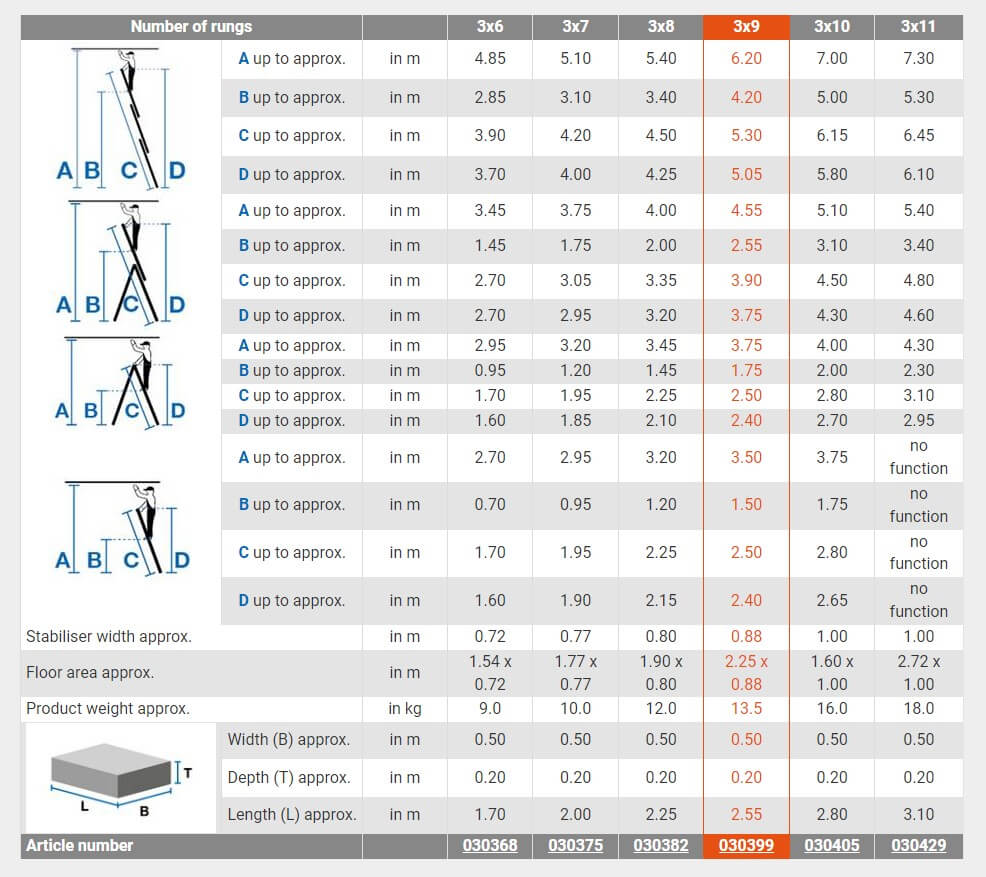 Radna visina kada su merdevine postavljene u slovo A 375cm